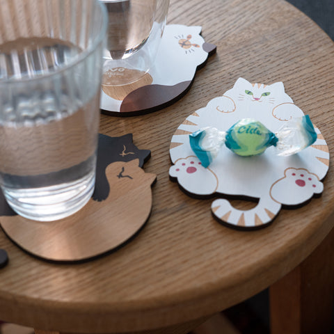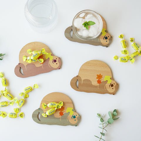 独自のデザインで、自然と笑みがこぼれる可愛らしい動物を描いたデザインのプレートは、コースターやディスプレイプレート、小物置きなど、使い方は自由。建具や家具等のプロダクトづくりの過程で生じる天然木の端材を使用しているため、木目も一つひとつ異なります。