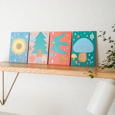 材料はビーチ無垢材。素朴な木目と風合いがキュートなイラストを引き立てます。UVインクジェットプリンタで印刷しているのでイラストが剥がれる心配もありません。